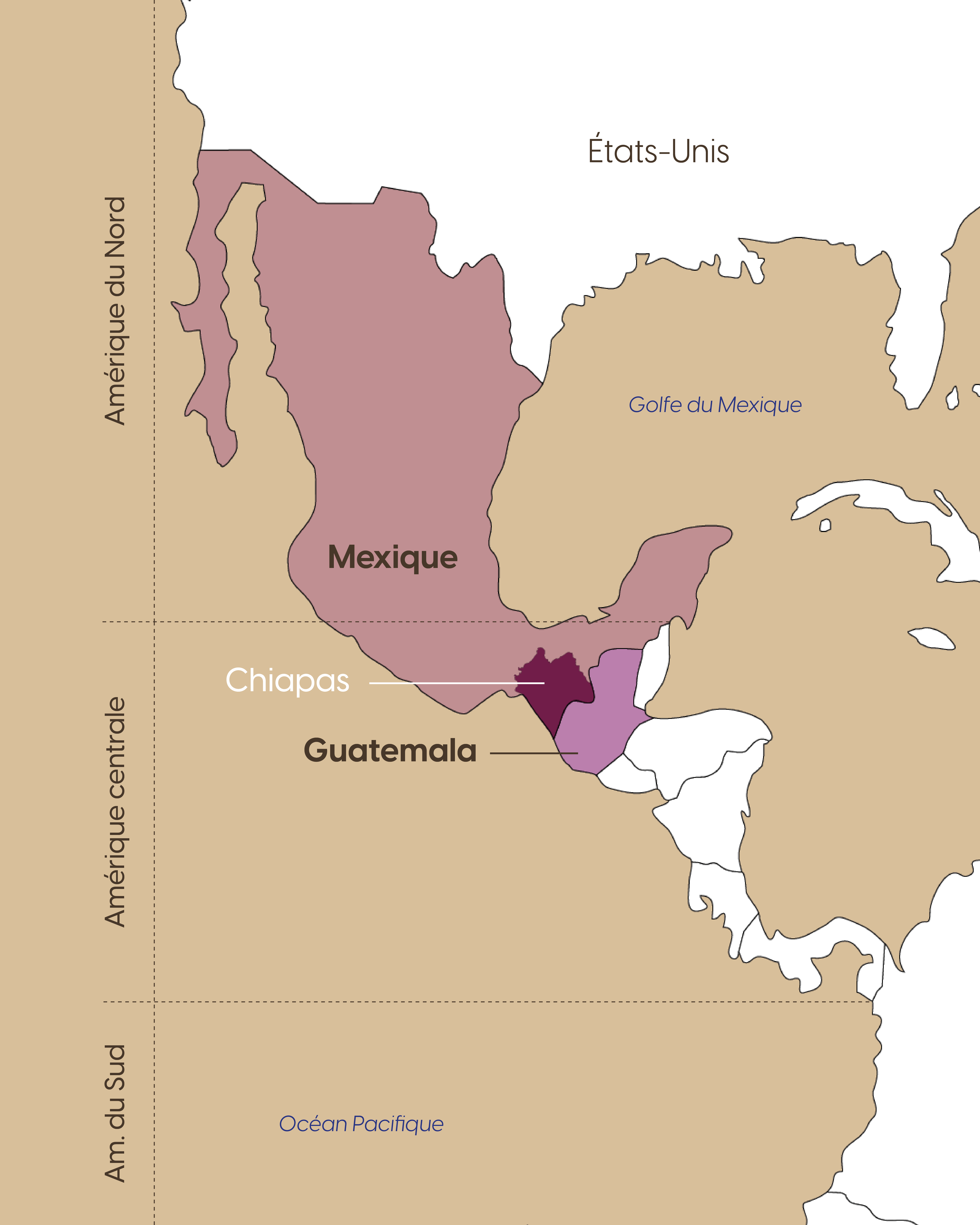 Les frontières, et par conséquent la distinction entre les Amériques, n’étaient pas définies comme celles que nous connaissons aujourd’hui. Le Guatemala et le Mexique furent divisés officiellement qu’à partir de 1882.