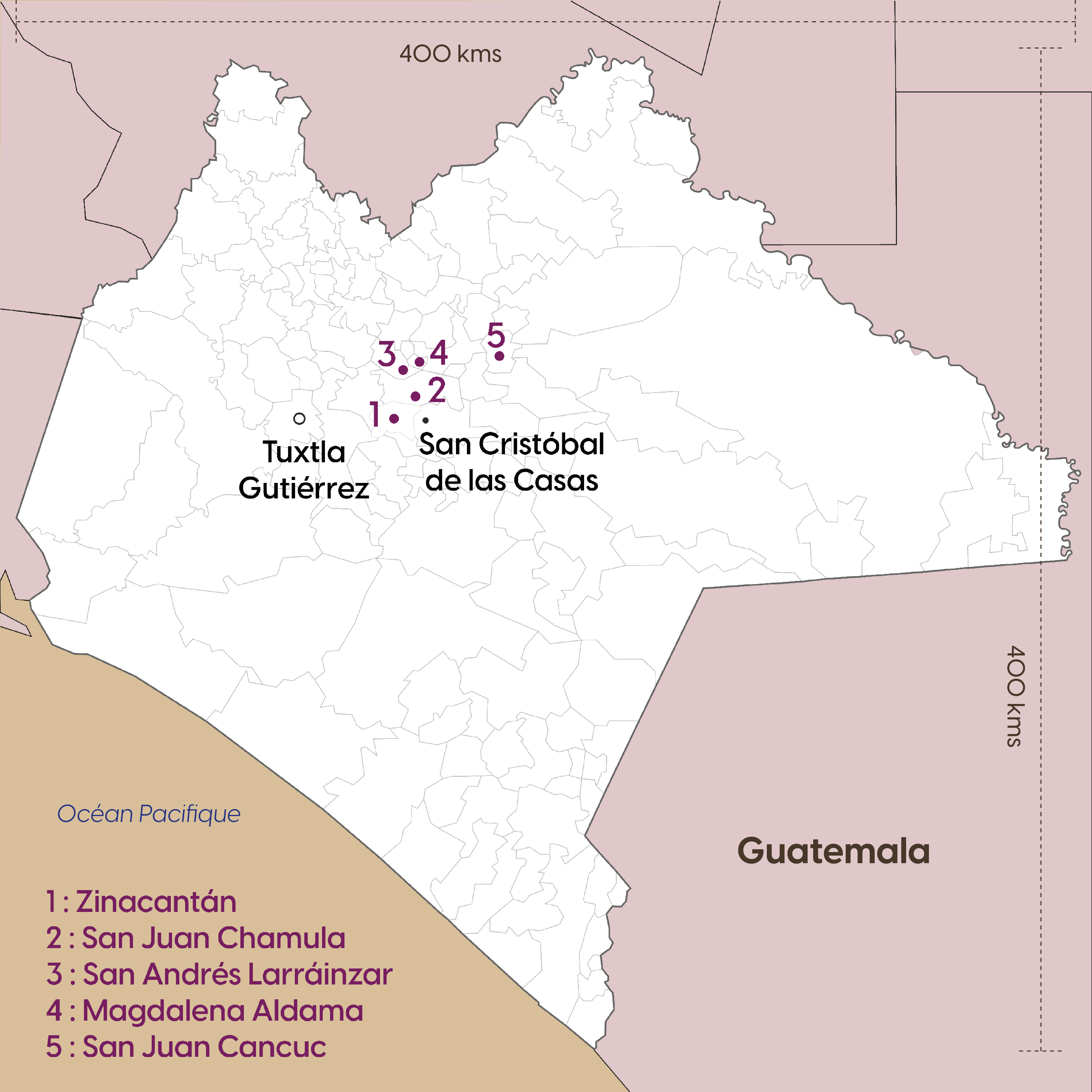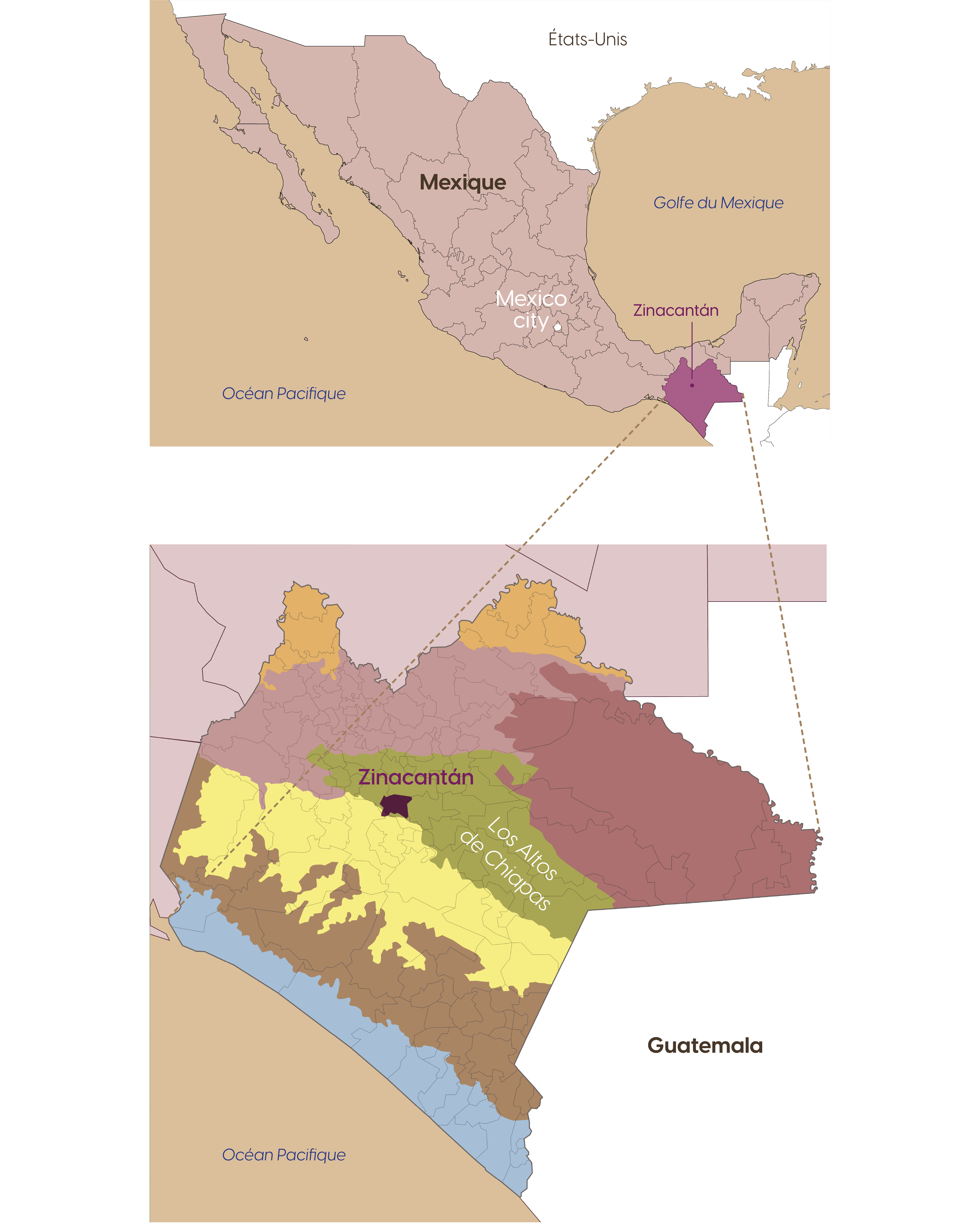 La municipalité de Zinacantán où vit la famille de femmes tzotziles avec lesquelles nous travaillons se trouve dans l’État du Chiapas, la région la plus au sud du Mexique, à la frontière du Guatemala.