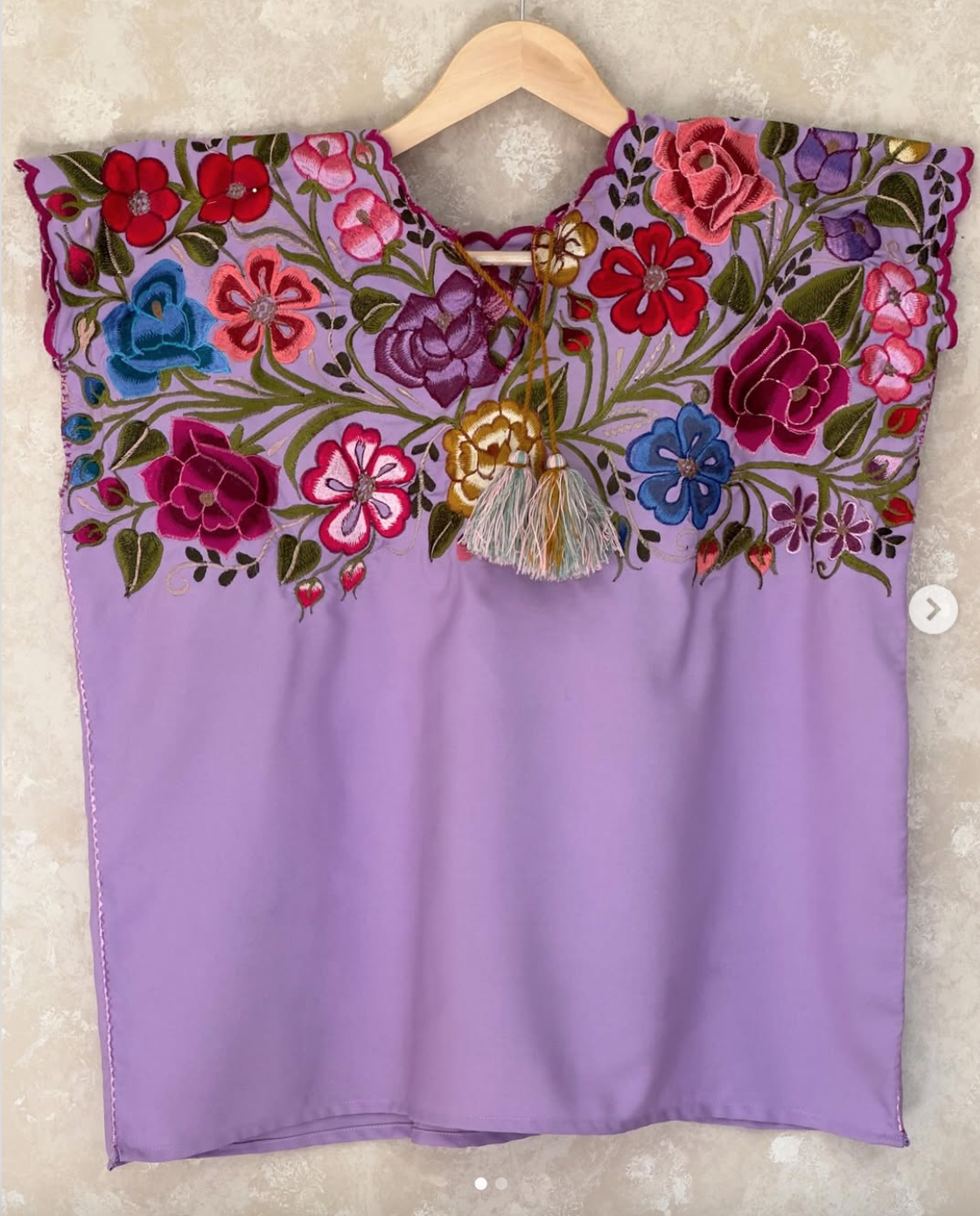 Les huipils des femmes de Zinacantán se distinguent par leur coupe large et leurs broderies florales élaborées sur les épaules et le torse, avec des bordures colorées.